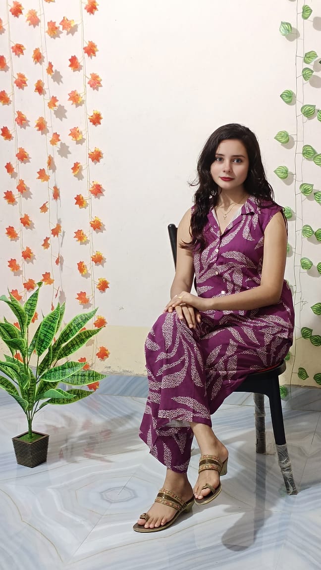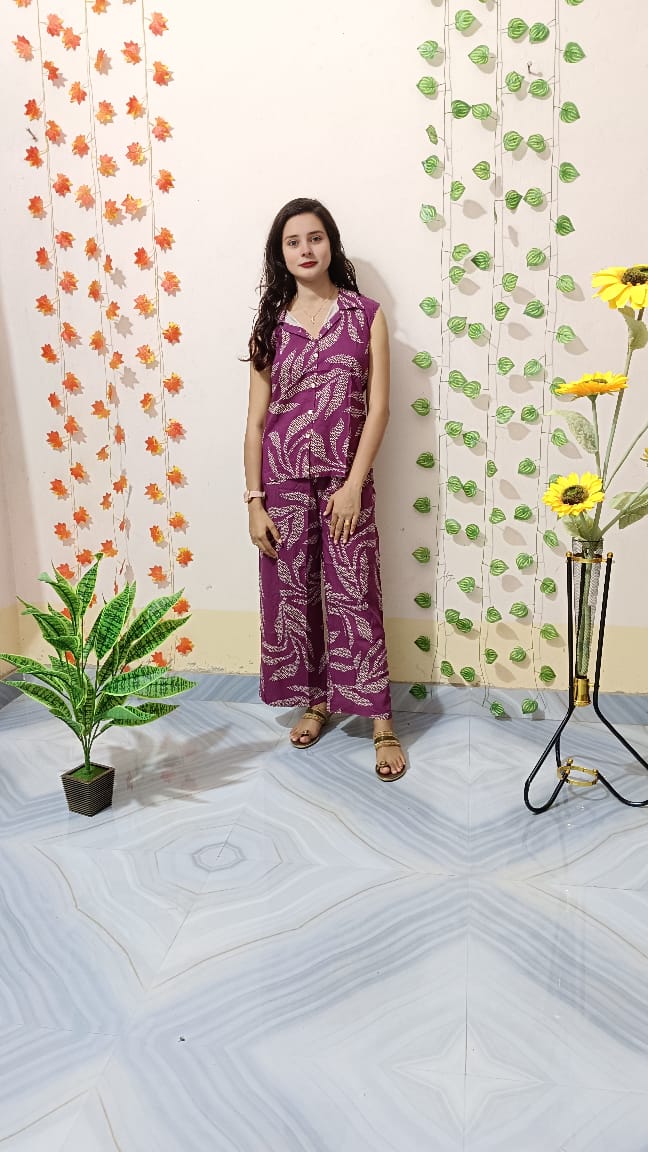 This Tunic Pant Co-ord Set combines comfort and style into one versatile outfit. The set features a long, straight-fit tunic with a V-neckline and three-quarter sleeves, designed with bold floral prints that add a vibrant touch. Paired with coordinating wide-leg pant, this set is made from soft, breathable fabric that ensures all-day comfort. Perfect for casual wear, lounging, or semi-formal occasions, it offers an effortless, coordinated look with the flexibility to mix and match with other wardrobe pieces. The set makes a chic and stylish addition to any ethnic or fusion wear collection. Hand wash recommended for maintaining quality and color vibrancy.